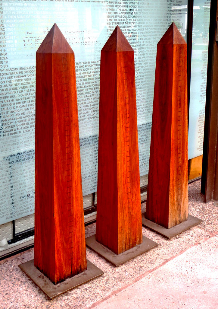 Description of artwork: The work provides a narrative for the cathedral's patron, St Stephen. Words from the Bible's Acts of the Apostles have been selectively carved into the stone.