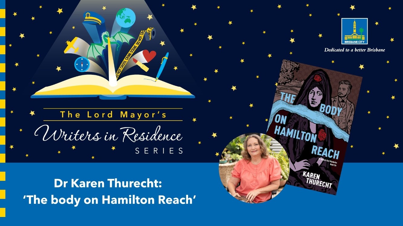 Delve into the world of 1889 Brisbane in the latest of the Dr Hamish Hart Mysteries, The body on Hamiton reach, a crime novel full of intrigue set on the banks of the Brisbane River. About the book It's 1889 Brisbane and Dr Hamish Hart and Dr Rita Cartwright attend the inaugural exhibition of the Queensland Arts Society, where they encounter the enigmatic Countess Isabella de la Vega. The evening takes a dark turn when a seemingly insignificant painting disappears from the exhibit. The next morning, the artist behind the missing piece is found dead on the mudflats of Hamilton Reach, prompting Hamish to perform an autopsy. As Hamish, Rita, and Sergeant James Bellamy delve into their investigation, they uncover the fact that the victim was secretly involved with Carlos Perez, a political fugitive from Spain. The plot thickens when another unexpected and violent death occurs at the exciting new tourist attraction of the Queensport Aquarium. The trio realizes that Perez is not the only one with hidden secrets. The deceased girl's mother harbours secrets of her own, and Rita's friend Anne-Marie also has mysteries to conceal. Even for the Countess, all is not as it appears. Can Hamish, Rita, and Bellamy unravel the interconnected mysteries of these two murders before the lives of everyone involved begin to unravel? Books will be available for purchase, or bring your copy from home to be signed. Presented as part of the Lord Mayor’s Writers in Residence series. Bookings essential. To reserve your place, visit Eventbrite or call the library