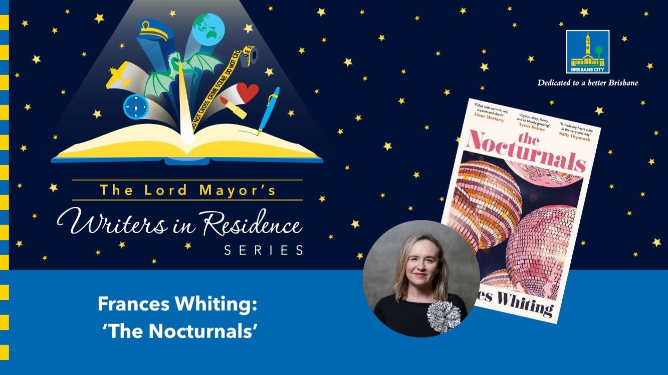 Join bestselling local author Frances Whiting in conversation with Kimberley Allsop as they discuss Frances' latest novel, The Nocturnals. About the book From the bestselling author of The Best Kind of Beautiful, Frances Whiting, comes an endearing, wise and witty novel of love and friendship, which asks, how far would you go, to protect your friends? In the summer of 1997, five high school students meet. Nina, the Good Girl. Beatrice, The Poetess. Harriet, the Ghost. Cosmo, the Professor. And Hunter, the Golden Boy. In their last year of school, they become inseparable, five sides of the same star, until a fault line cracks between them, scattering them to all corners of the globe. Now, fifteen years later, Hunter has called them with his conch shell lips to return to the place where they lived and laughed and cried together, before secrets were whispered, and promises were broken. No-one knows why he has assembled them, but there is no question they will go. Because to outsiders, they might be, in turns, a little bit weird, a little bit glamorous, and a little bit dangerous. But to each other, they are, and always will be, The Nocturnals. From bestselling author Frances Whiting comes an irresistible, witty, darkly delightful and utterly endearing novel of friendship - and the lengths we will go to protect those who we love. Books will be available for purchase, or bring your copy from home to be signed. Presented as part of the Lord Mayor’s Writers in Residence series. Bookings required. To reserve your place visit Eventbrite or call the library.