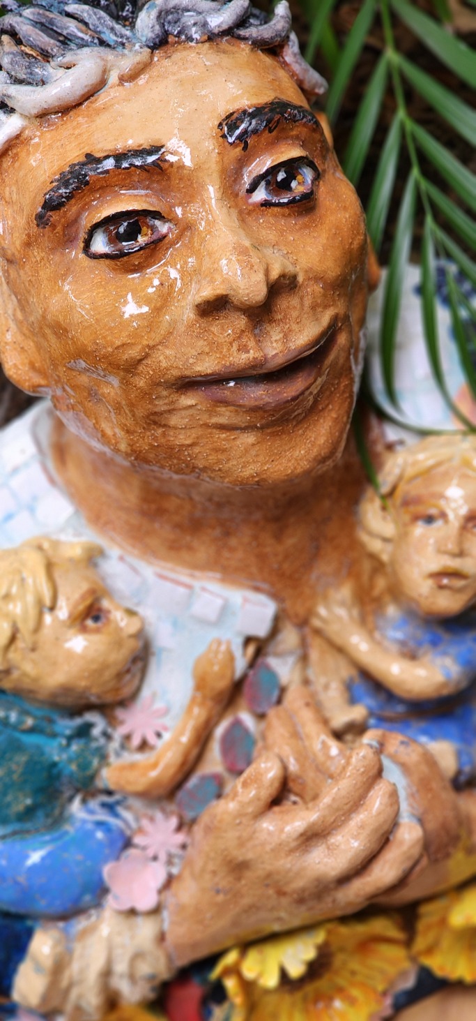 Carol khan Nicholls Garden Sculpture, landscape paintings, nature clips and retrospective. Carol's arts practice over the last 40 years has taken her from mural to miniature, portrait to thangka, costume design and textile art. She has shown her fine art in Melbourne art galleries, built and curated a 40 foot ceramic and landscape mural in Tennant Creek, exhibited her fine art and ceramics across Brisbane, most recently a collection of paintings and aerial miniatures at Flying Arts gallery Brisbane. She is a published author of children's stories and is passionate about the protection of cultural and environmental diversity. Currently her indoor/outdoor ceramic work is driven by personal history, narrative, elements f1igurative of natural wonder and dreamscape and is reflective of the human condition.